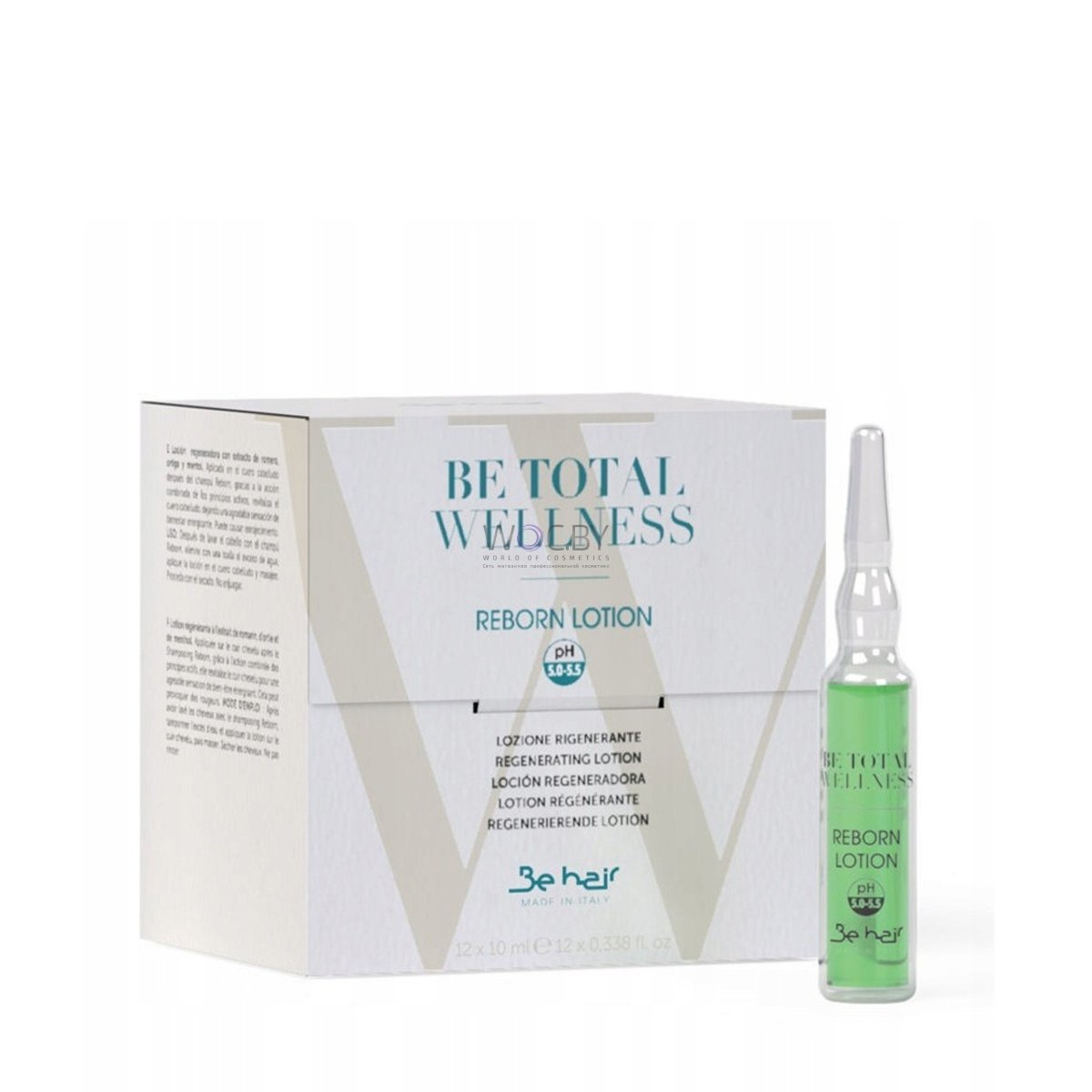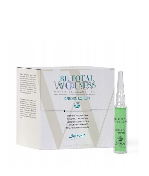 Восстанавливающий лосьон против выпадения Be Hair Be Total Wellness Reborn Lotion pH 5.0-5.5. Регенерирующий лосьон против выпадения волос Be Hair Be Total Wellness Reborn Lotion, стимулирует волосяные луковицы. Насыщает их энергией и силой, придает повышенную прочность и эластичность. Улучшает микроциркуляцию крови, оставляет приятное и бодрящее ощущение свежести.