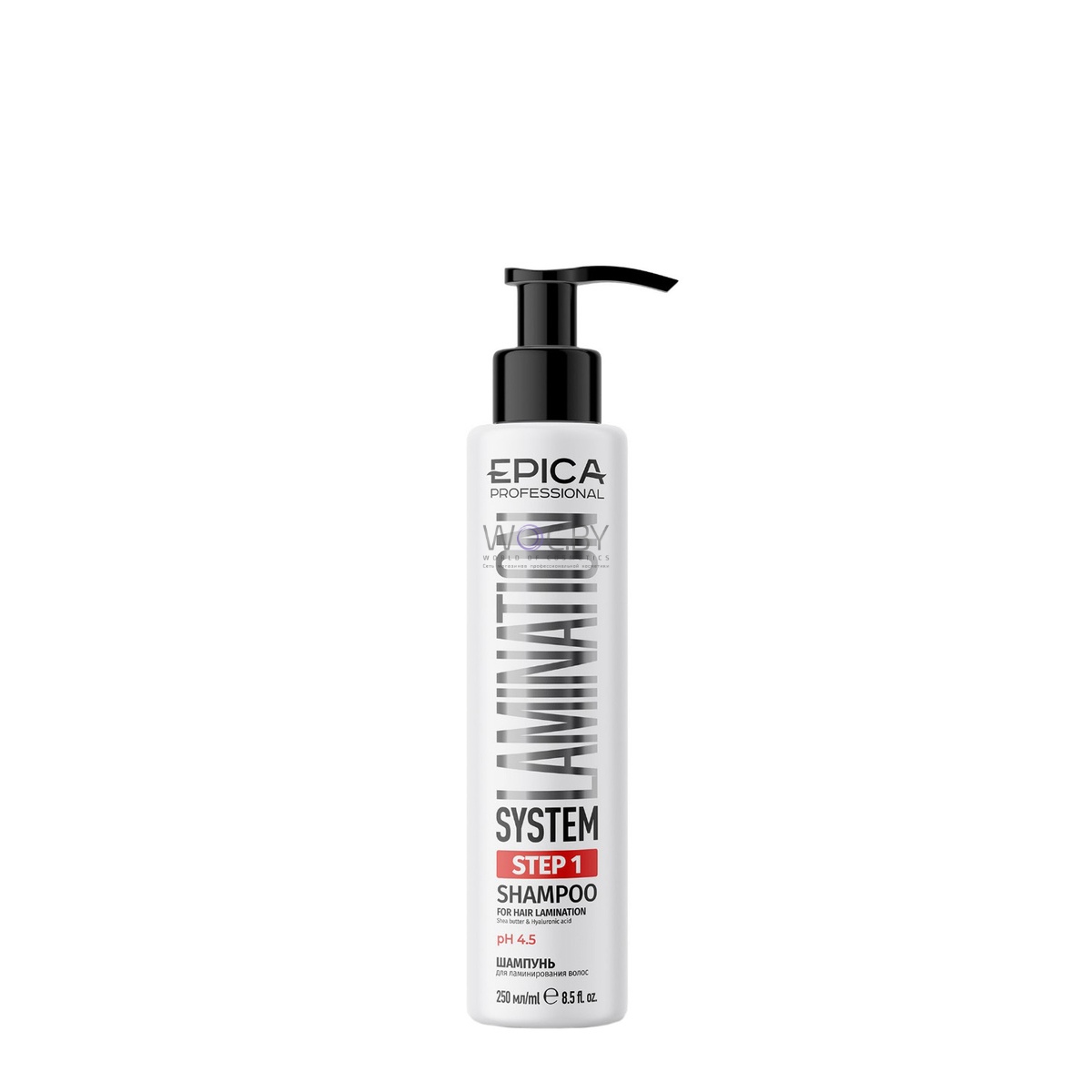 Шампунь эффективно удаляет все виды загрязнений, увлажняет волосы и кожу головы, обеспечивает подготовку к процедуре ламинирования. Масло ши придает мягкость, гиалуроновая кислота восстанавливает водный баланс в структуре волос. Ph 4.5.